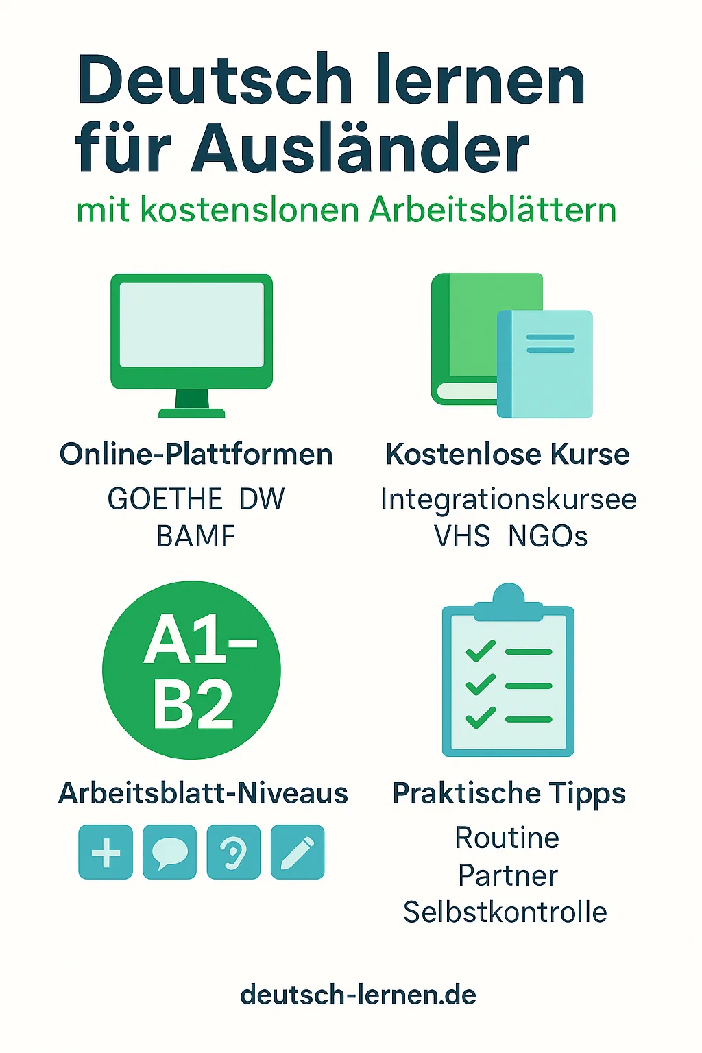 Sprache ist der Schlüssel zu einem neuen Leben. Wer nach Deutschland kommt, merkt schnell: Ohne Deutschkenntnisse ist es schwierig, Arbeit zu finden, Freunde zu gewinnen oder im Alltag klarzukommen. Doch viele stellen sich die Frage: Muss man für Sprachkurse immer viel Geld zahlen? Die gute Nachricht lautet: Nein. Es gibt zahlreiche Möglichkeiten, wie Ausländer Deutsch lernen können – mit kostenlosen Arbeitsblättern, Online-Übungen und sogar staatlich geförderten Kursen.