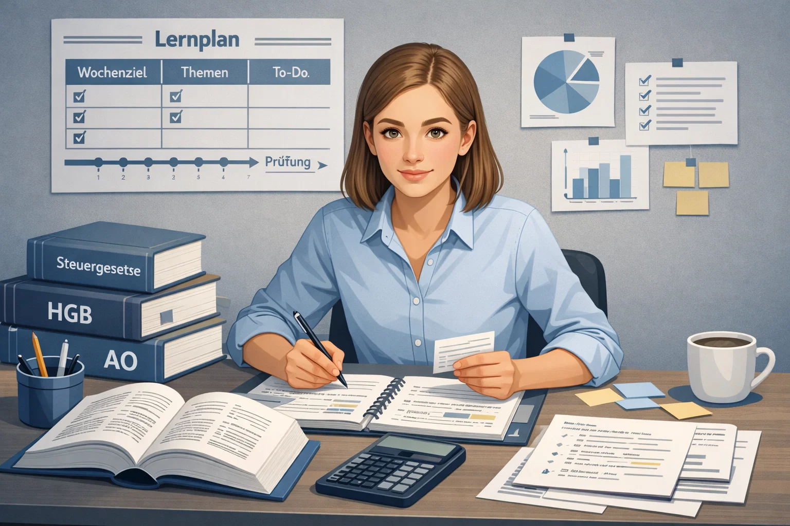 Effektive Prüfungsvorbereitung für Steuerfachangestellte mit Lernplan, Unterlagen und konzentrierter LernatmosphäreEffektive Prüfungsvorbereitung für Steuerfachangestellte heißt nicht, jeden Ordner auswendig zu lernen. Es heißt, zu wissen, was zählt, wann es zählt und wie du lernst, ohne dich zu verzetteln. Viele fallen nicht durch, weil sie zu wenig wissen. Sie fallen durch, weil sie falsch lernen, zu spät anfangen oder sich von der Stoffmenge einschüchtern lassen.