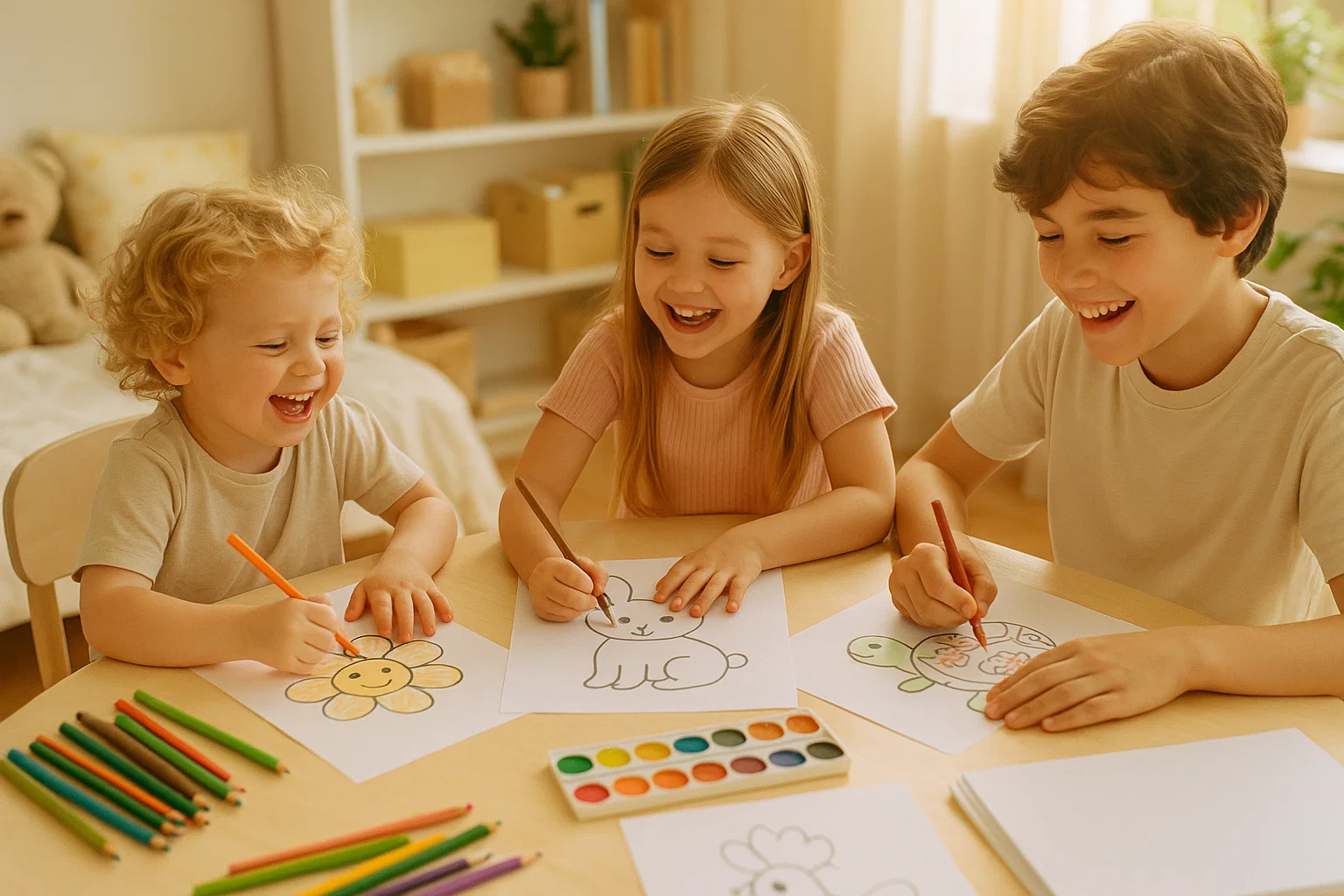 Routine zählt mehr als Dauer. Täglich 15 Minuten reichen. Kinder, die regelmäßig malen, steigern ihr Selbstvertrauen und lernen, geduldig zu arbeiten.